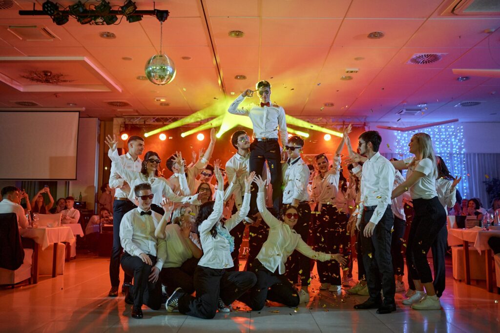 Z uporabo sodobnih svetlobnih efektov poudarimo ključne trenutke, nastope in plesni del dogodka ter zagotovimo, da vsak dogodek zasije v pravi luči. Vse deluje usklajeno, varno in brez zapletov – od prvega prižiga do zadnjega aplavza.
